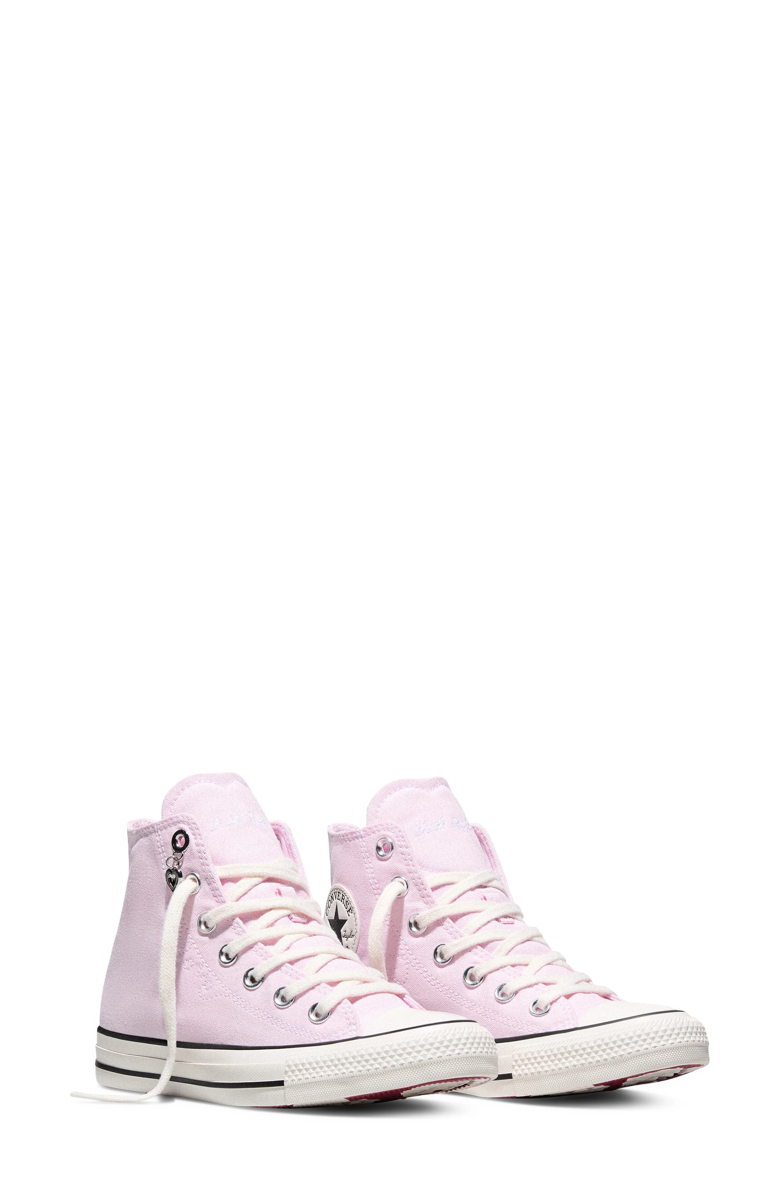 Exploding in hearts from the shape of the tongue to the dangling lace charm to the red-and-white tread, this always-cool canvas sneaker wraps every step in colorful love. The streamlined profile and black foxing stripes ringing the cupsole honor the shoe's basketball heritage as it's grounded generations of fashion and counterculture looks alike. Lace-up style Removable, cushioned insole OrthoLite® footbed Textile upper and lining/rubber sole Imported
