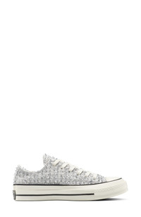 Metallic tweed adds texture and shine to the upper of an iconic sneaker still sporting the thicker laces and varnished rubber cupsole that define its 1970s update. The streamlined profile and All Star license plate maintain the heritage details and sneakerhead approval. Lace-up style OrthoLite® footbed Textile upper and lining/rubber sole Imported