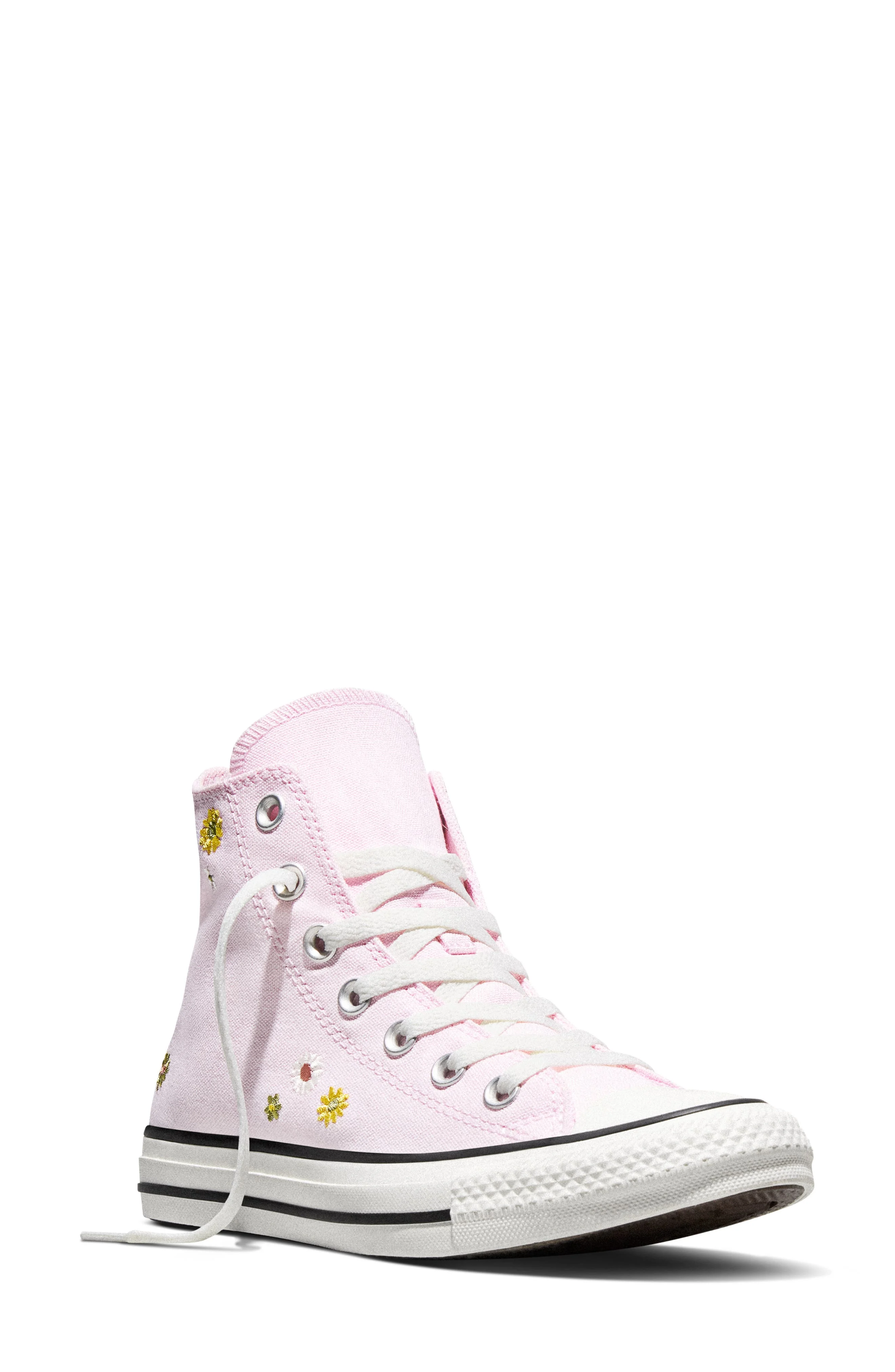 Embroidered flowers bring fresh energy to an always-cool canvas sneaker that first bloomed in 1932 as a game-winning basketball shoe. The streamlined profile and diamond-patterned rubber tread honor the shoe's heritage as it's grounded generations of fashion and counterculture looks alike. Lace-up style Removable OrthoLite® insole Textile upper and lining/rubber sole Imported