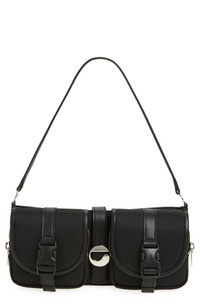 Buckled cargo pockets bring a futuristic-utility refresh to an iconic shoulder bag designed in an elognated silhouette with sculptural C hardware. Top zip closure Removable shoulder strap Exterior buckle-flap pockets Textile Imported Designer Handbags