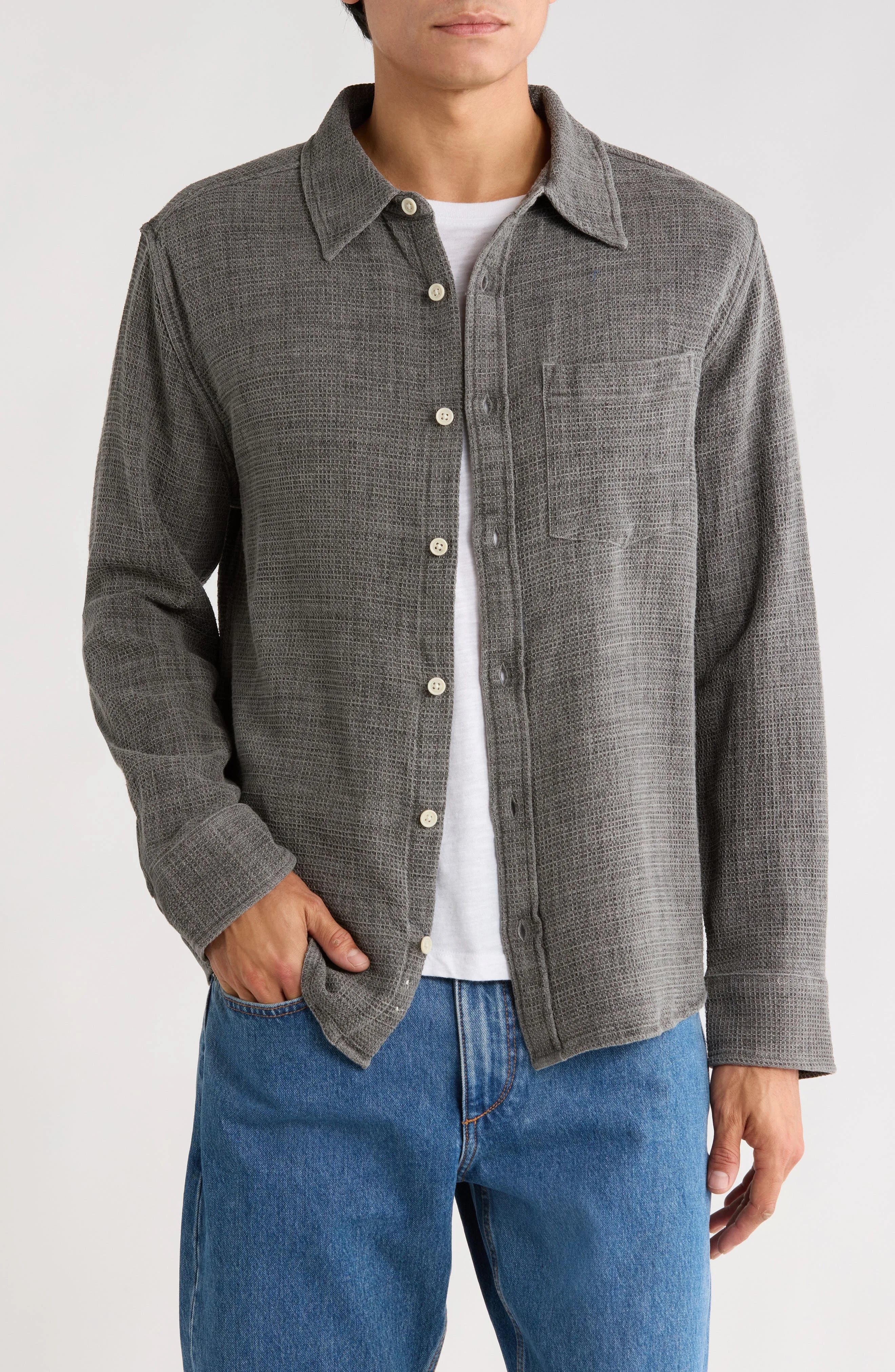 Corridor Pigment Dyed Cotton Waffle Button-Up Shirt in Grey at Nordstrom