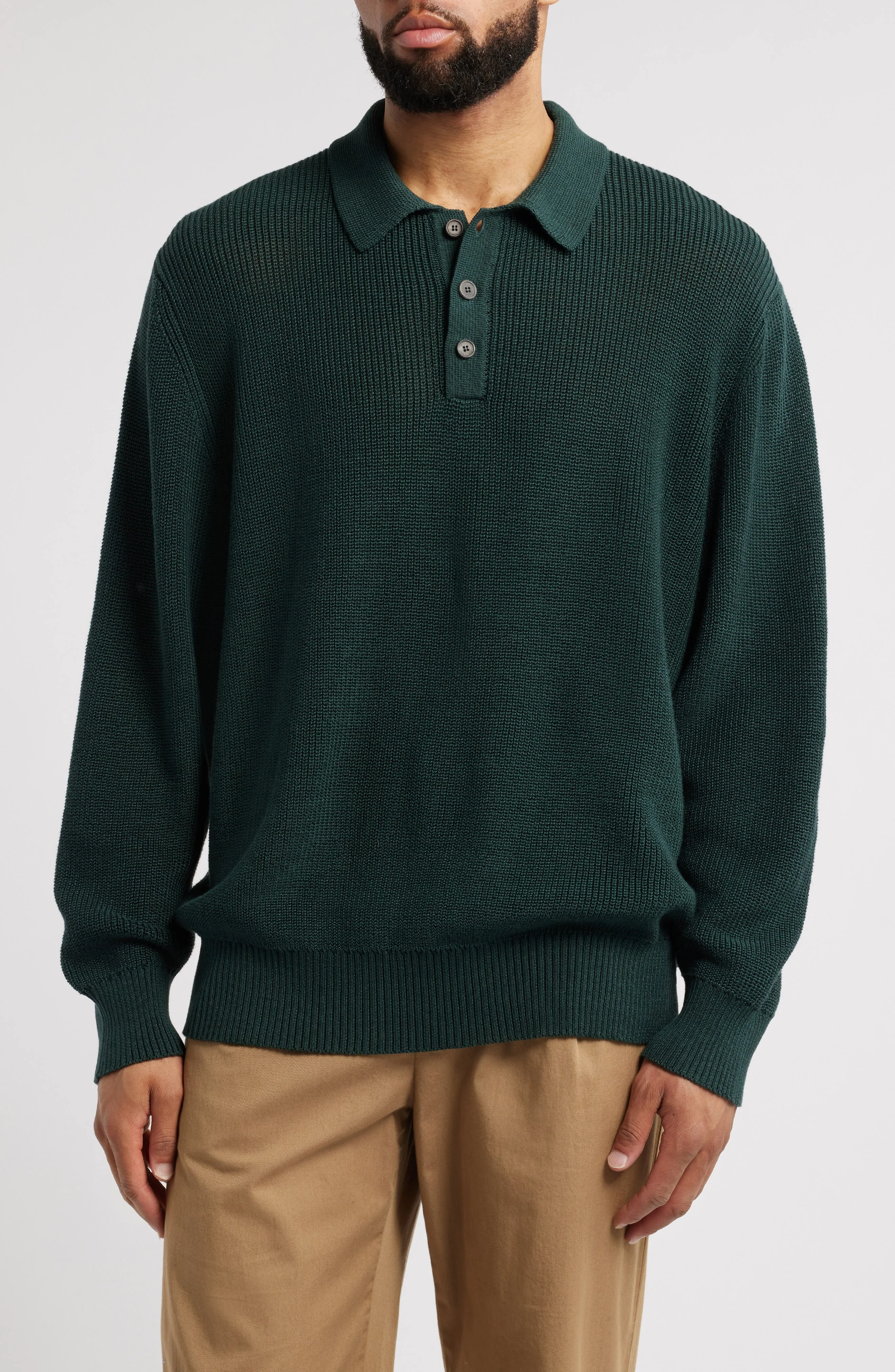 Corridor Slouchy Cotton Polo Sweater in Grn at Nordstrom