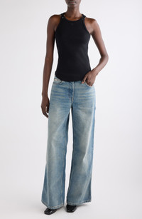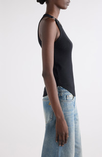 Courrèges Buckle '90s Stretch Cotton Rib Tank in Black at Nordstrom