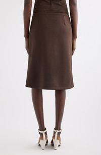 From the pre-fall ’25 collection, this A-line midi skirt merges minimalism with a hint of edge. High-contrast logo embroidery stands out against its sleek fabric, while two zip pockets add practicality without interrupting its clean lines. Elastic waist Front zip pockets 100% polyester Machine wash, dry flat Imported Designer Clothing