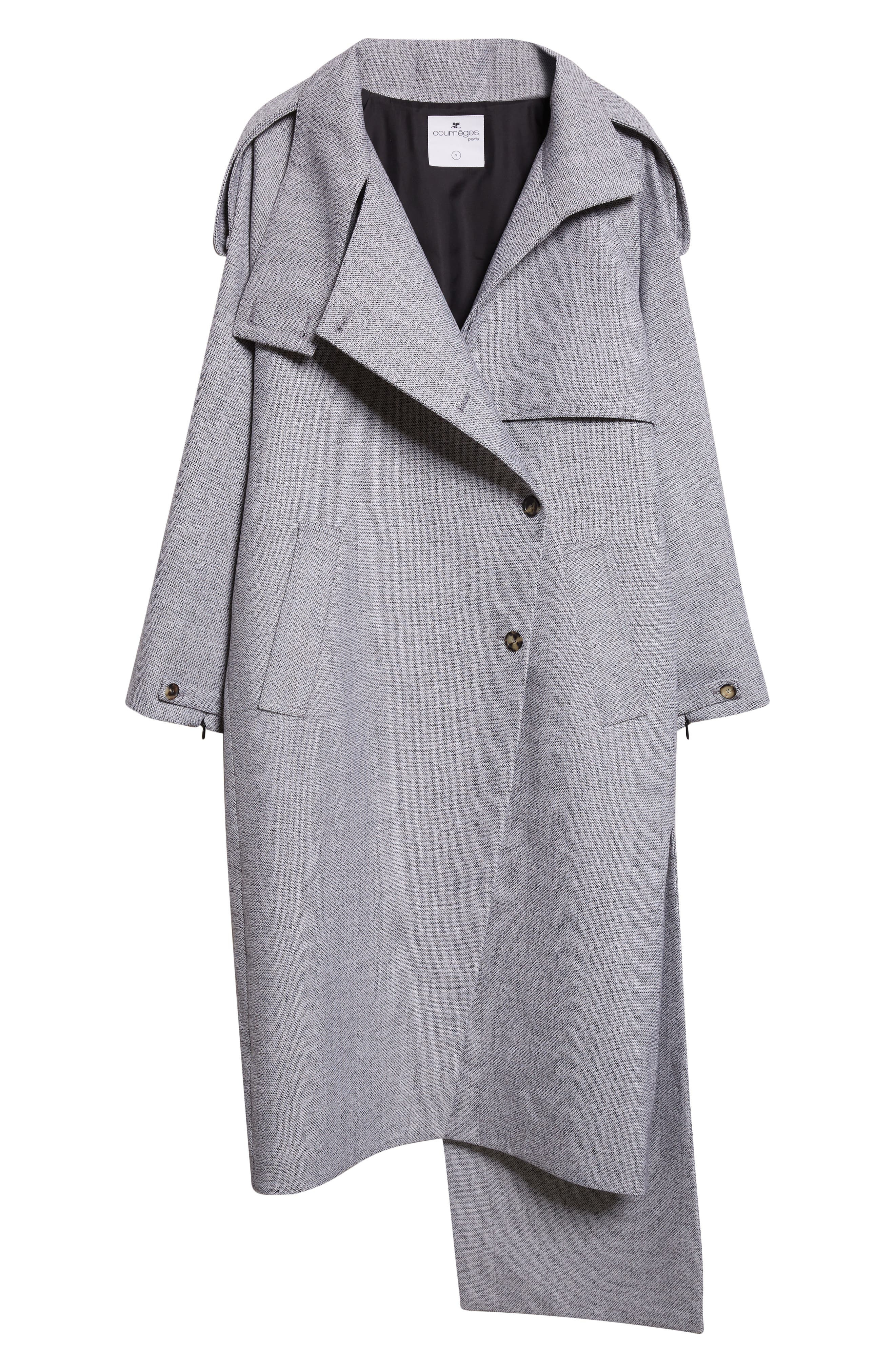 Courrèges Oblique Caviar Asymmetric Wool Trench Coat in Heritage White/Black at Nordstrom