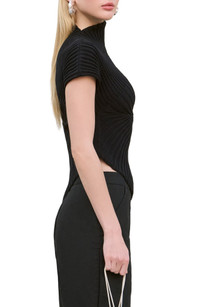 Engineered off-kilter ribs hug your curves in an all-cotton knit top made with an asymmetric funnel neck and hem to further the avant-garde look. Funnel neck Short sleeves 100% cotton Hand wash, dry flat Imported