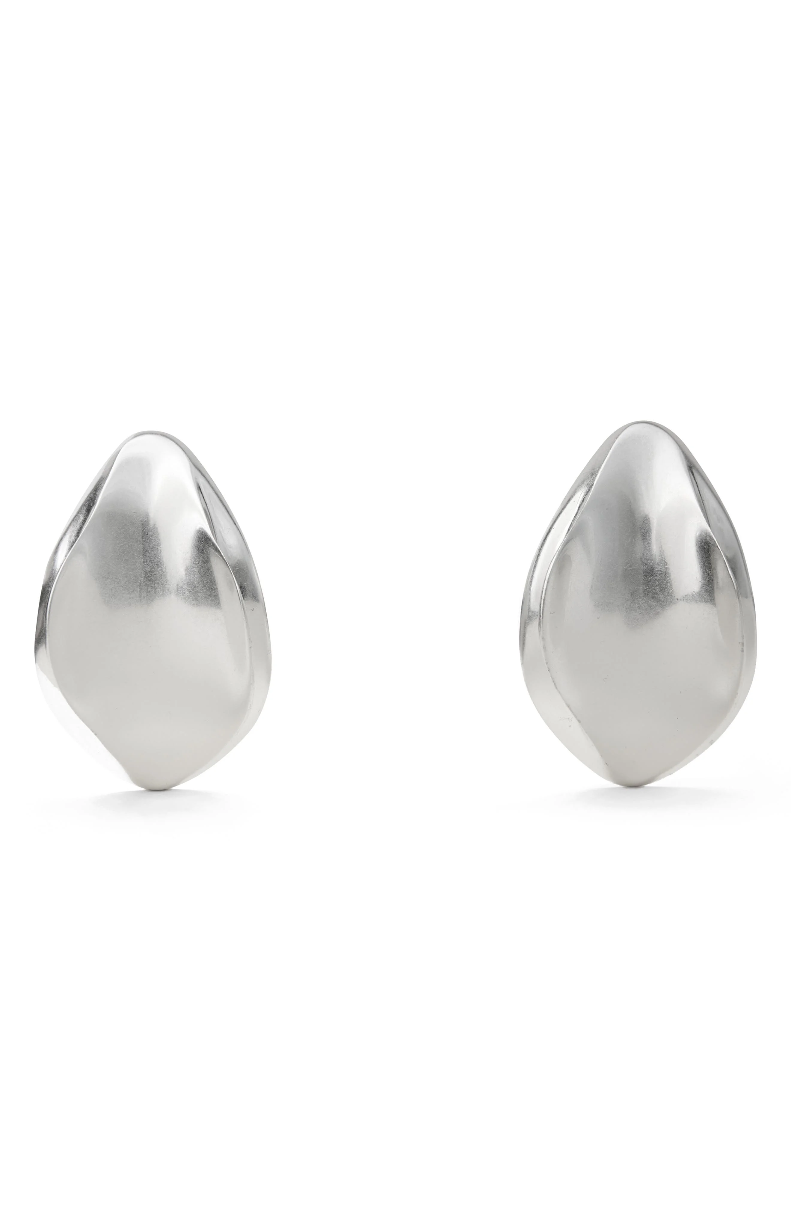 These silvery earrings are droplets of light on your lobes. 1 1/4" drop; 1/4" width Post back Silvertone plate Imported