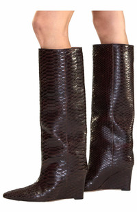 EMBOSSED TEXTURE LEATHER BOOTS Wedge heel Knee high with slip on style Pointed toe Cushioned leather insole