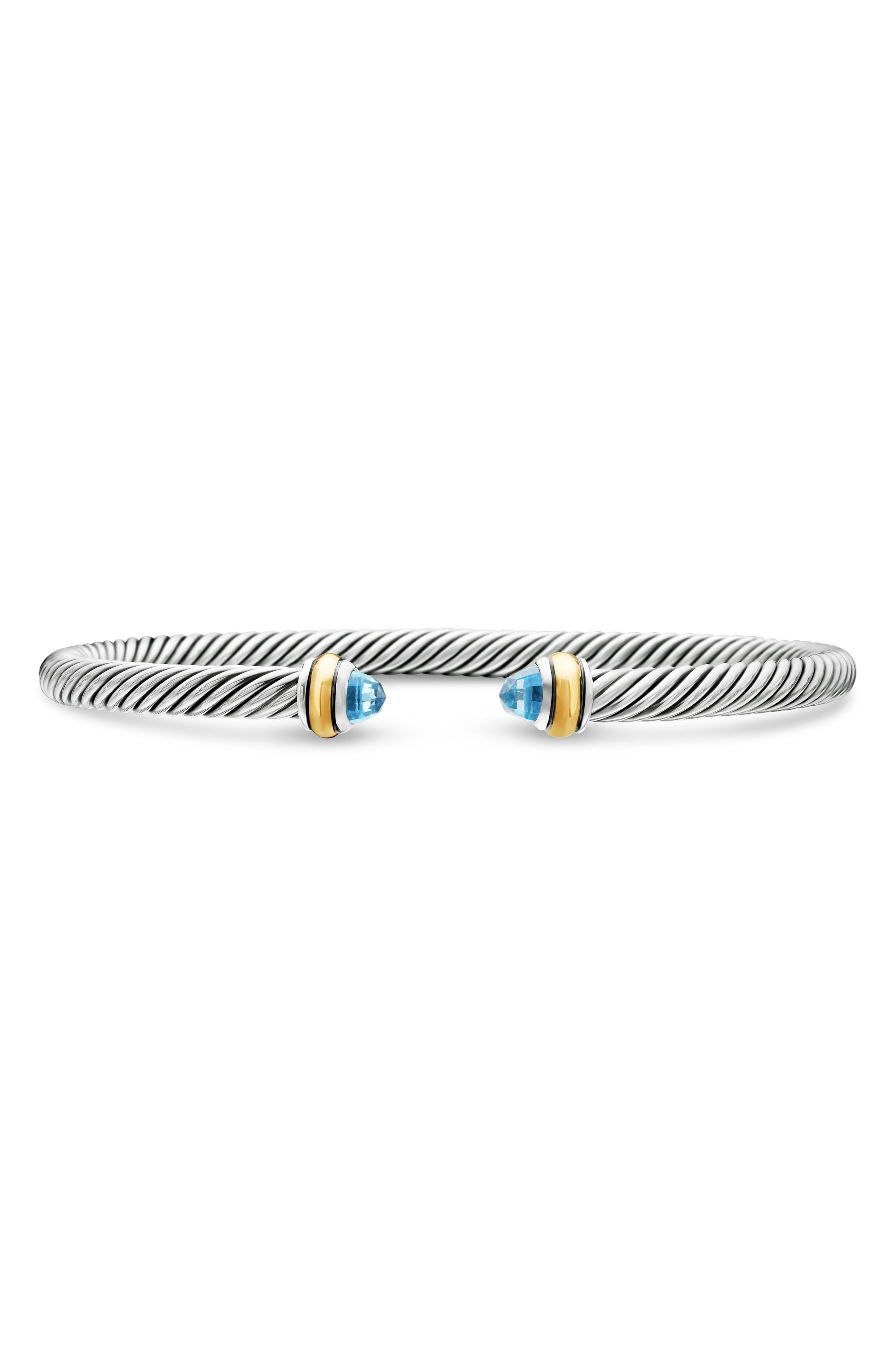David Yurman Cable Classic Bracelet with 18K Gold & Semiprecious Stones, 4mm in Blue Topaz at Nordst