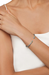 Semiprecious stones gleam from the tips of an open sterling-silver bangle crafted in a twisted silhouette and trimmed with 18-karat gold. 4mm width Sterling silver/18k gold/cultured freshwater pearl, black onyx, citrine, garnet, amethyst, turquoise, peridot or blue topaz Made in Italy