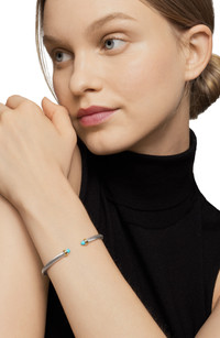 Semiprecious stones gleam from the tips of an open sterling-silver bangle crafted in a twisted silhouette and trimmed with 18-karat gold. 4mm width Sterling silver/18k gold/cultured freshwater pearl, black onyx, citrine, garnet, amethyst, turquoise, peridot or blue topaz Made in Italy