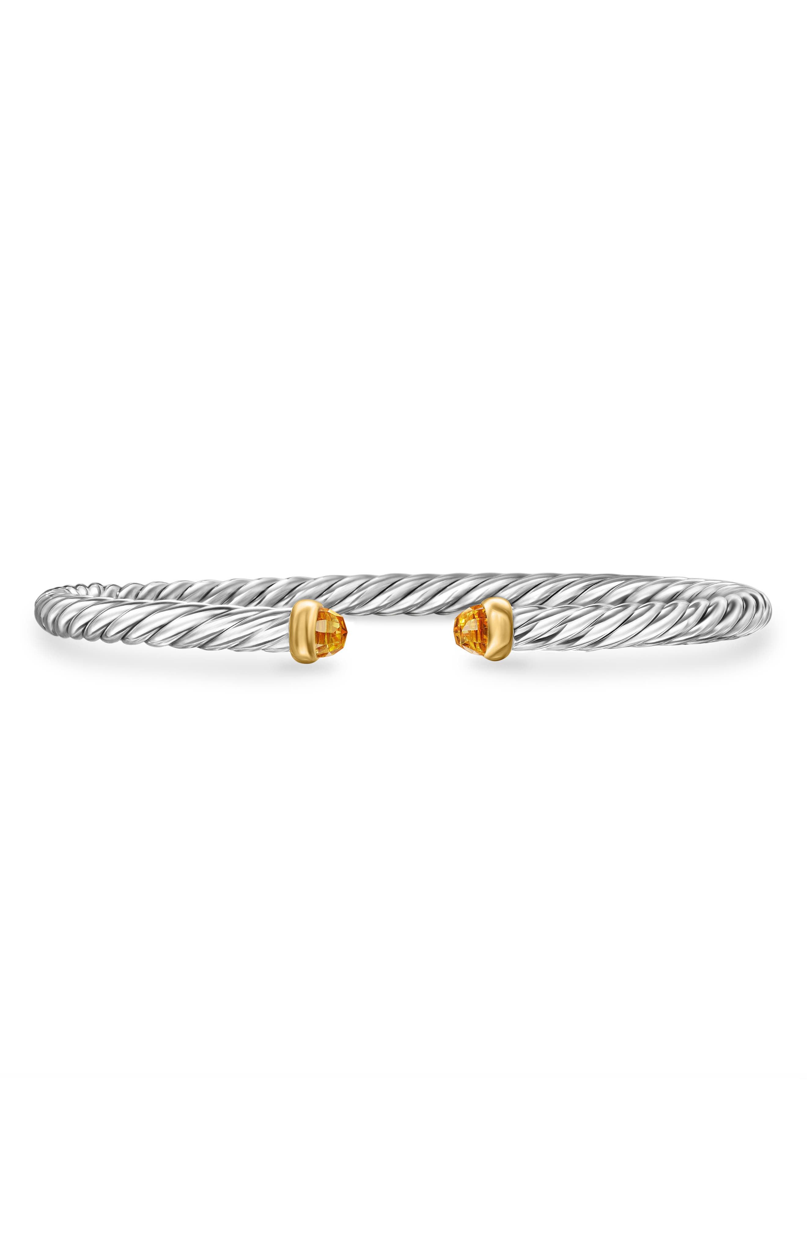 David Yurman Cable Flex Bracelet in Sterling Silver with 14K Yellow Gold, 4mm in Silver/Gold/Citrine