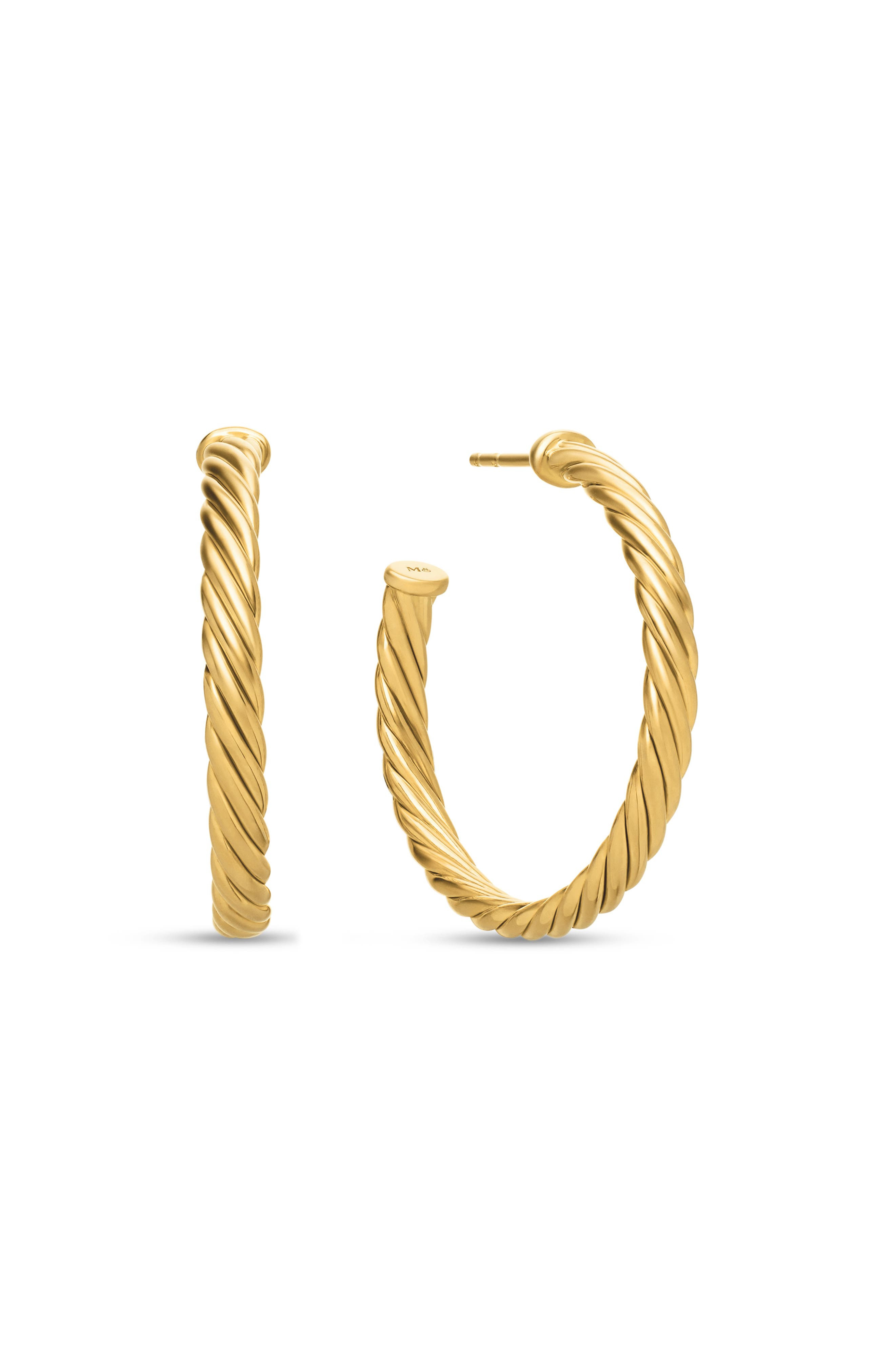 Crafted from 18-karat gold, these twisty, artfully sculpted hoop earrings will lend just-right gleam to your looks. Post back 18k gold Made in Italy