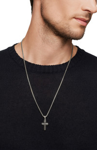 Men's Deco Cross Pendant in Silver, 27mm