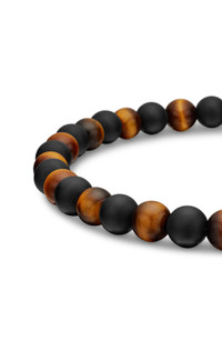 Sterling silver with onyx and tiger's eye. Bracelet, 6mm width. Push-clasp closure. Made in the USA.