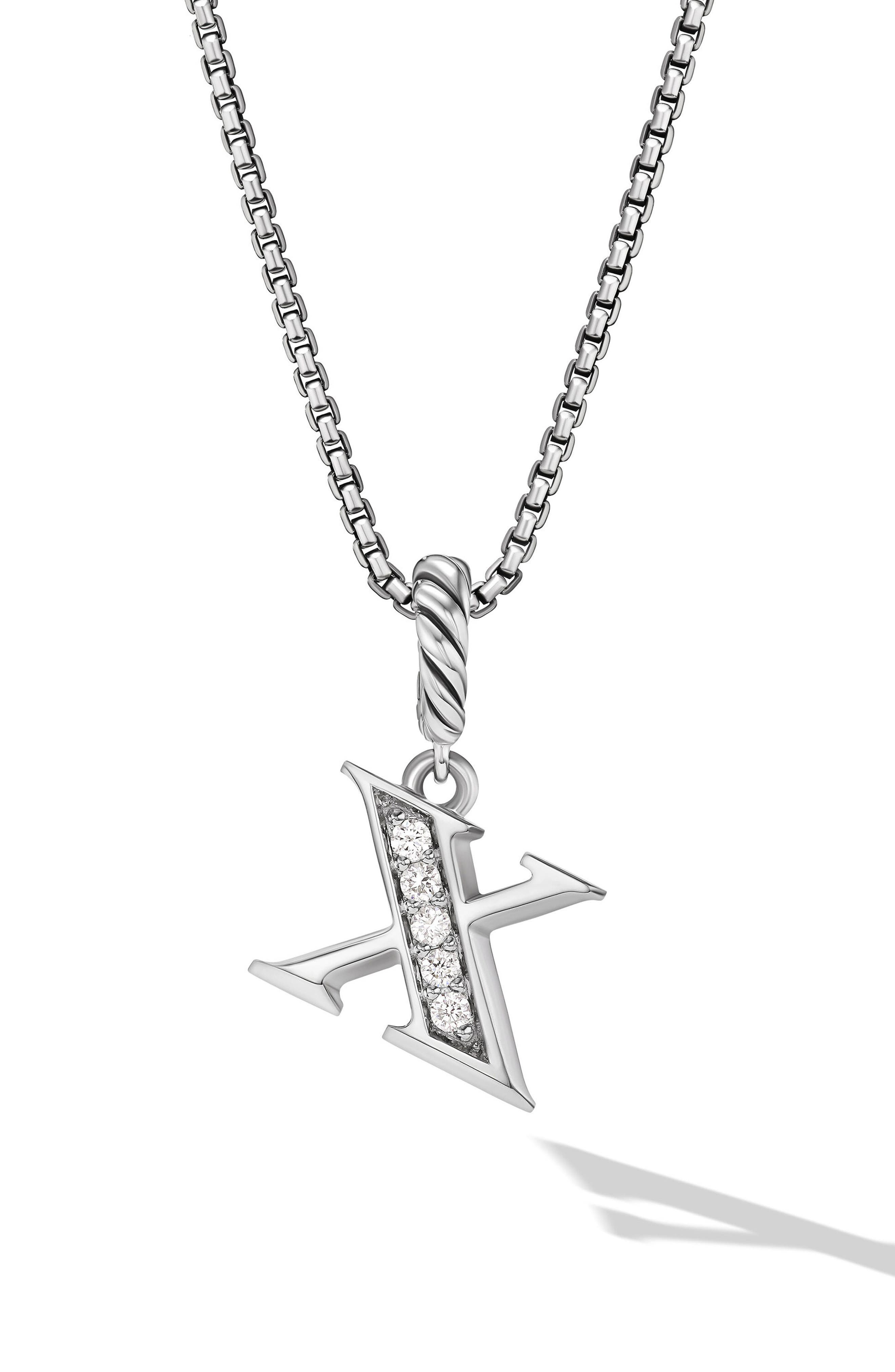 David Yurman Pavé Initial Pendant Necklace in Sterling Silver with Diamond in Sterling Silver