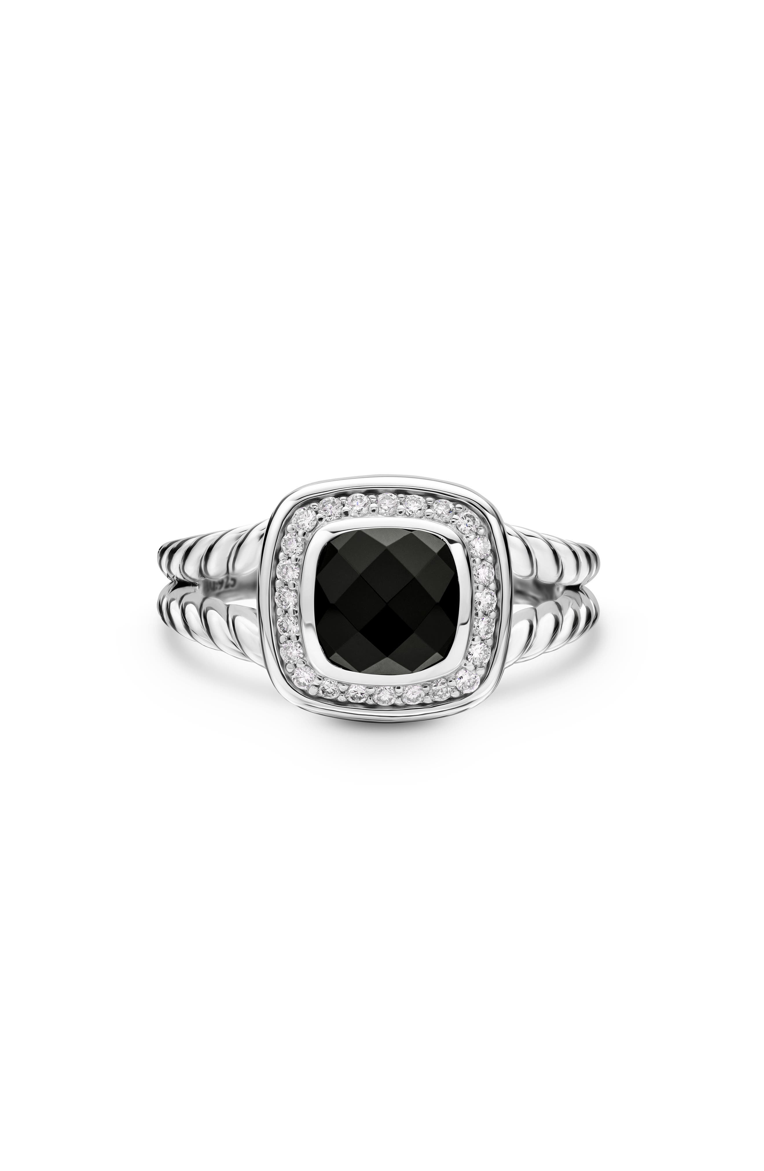 David Yurman Petite Albion® Diamond Halo Cushion Ring in Black Onyx at Nordstrom