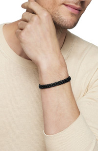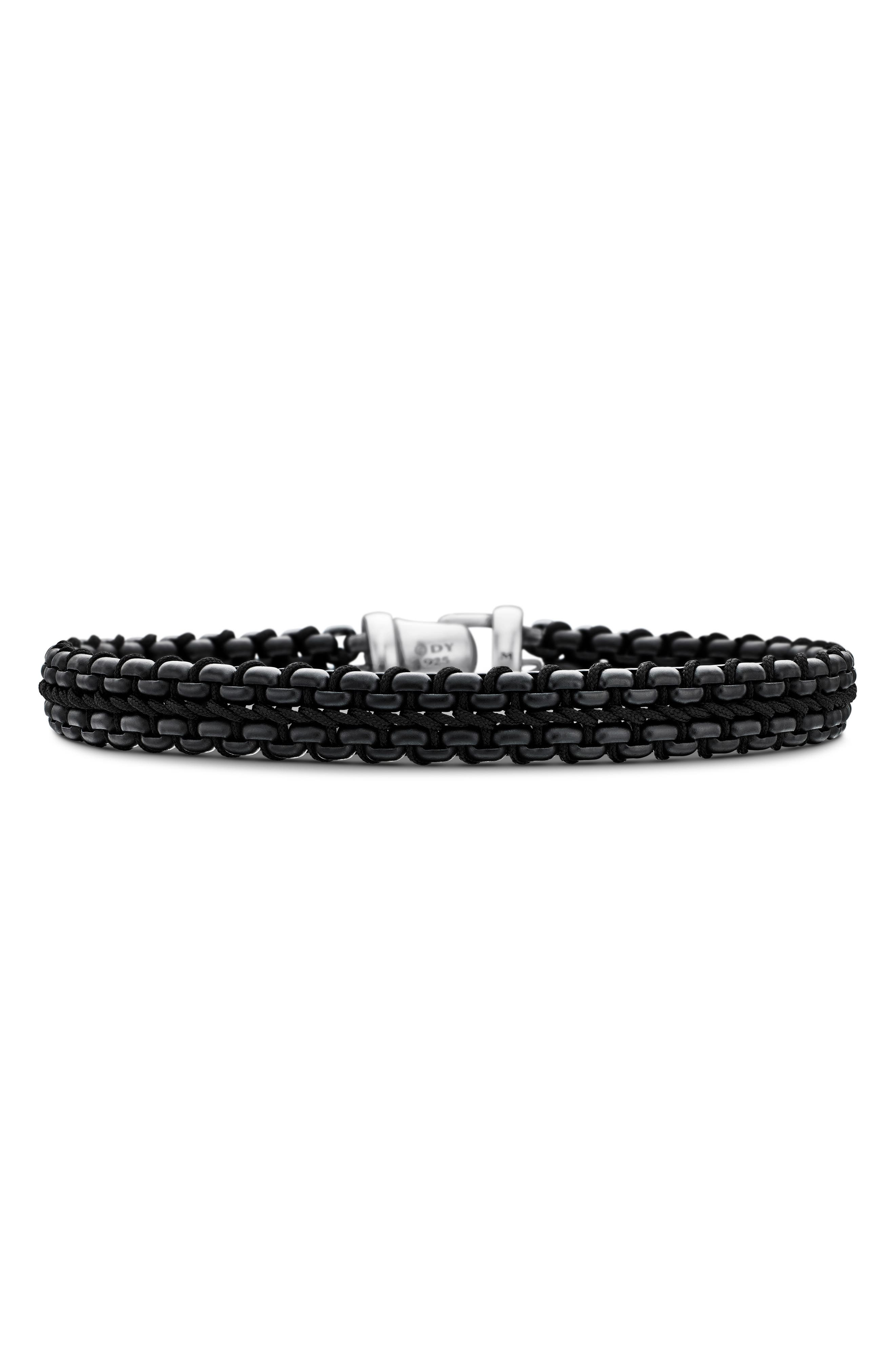 David Yurman Woven Box Chain Bracelet in Sterling Silver with Stainless Steel & Nylon, 10mm in Black