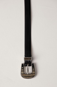 Finish your look with a head-turning flourish when you add this Italian-crafted leather belt detailed with polished hardware inlaid with cool stone details. Leather Made in Italy