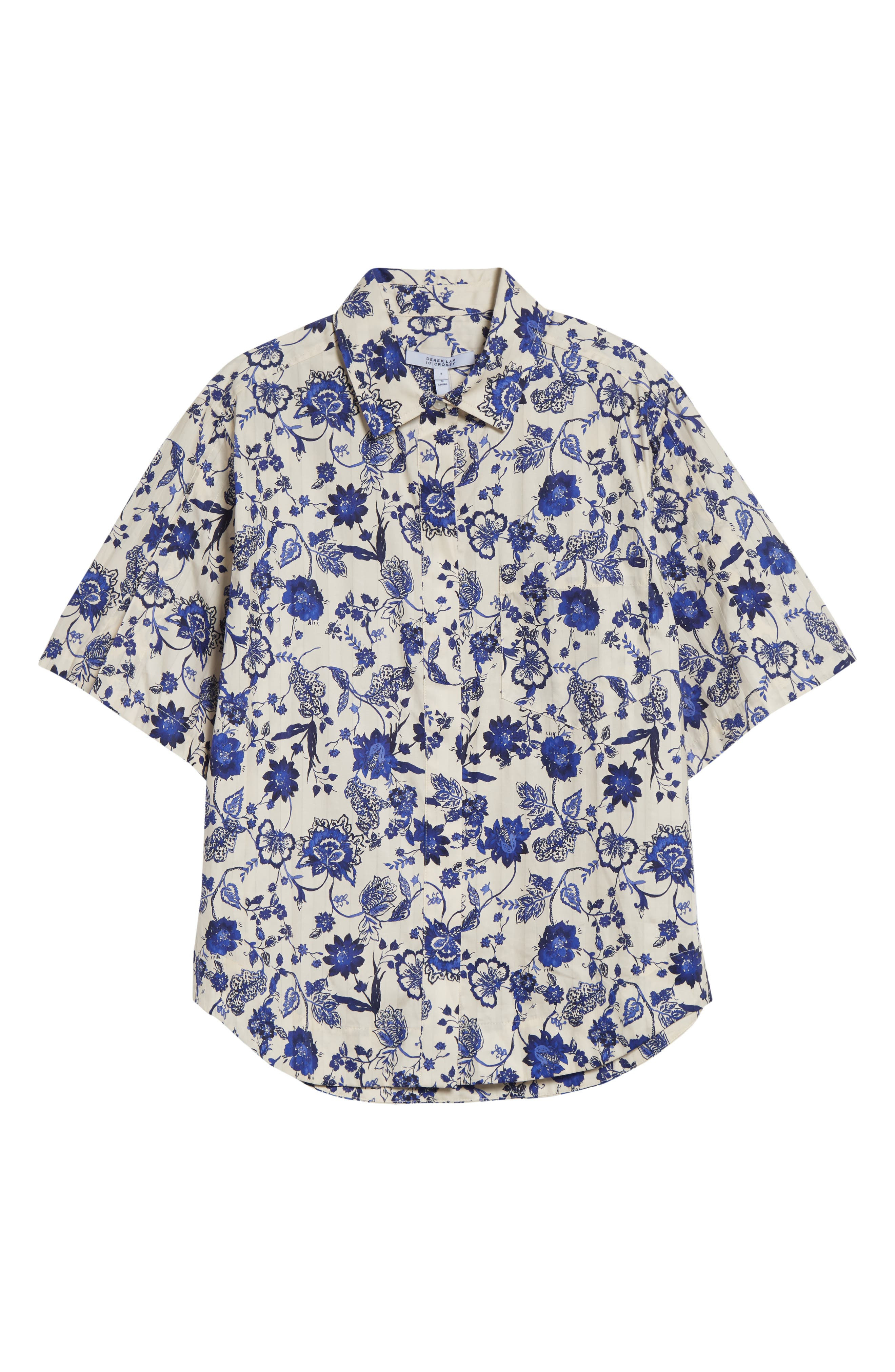 Derek Lam 10 Crosby Keaton Floral Elbow Sleeve Cotton Button-Up Shirt in French Blue Multi at Nordst