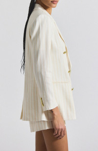 Derek Lam 10 Crosby Walter Stripe Double Breasted Linen Blend Jacket in Sand/White at Nordstrom