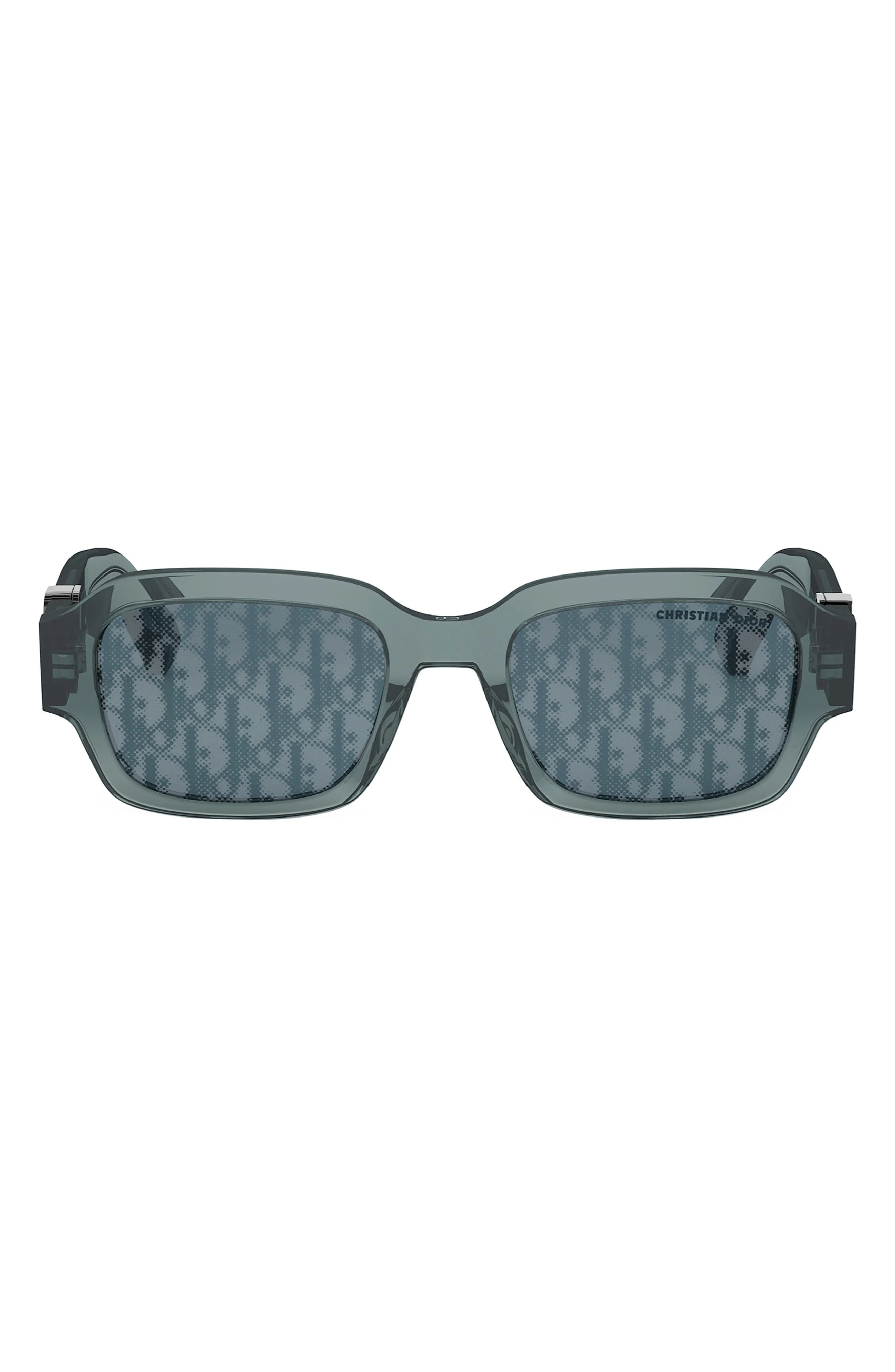 'Dior Oblique S2I 52mm Rectangular Sunglasses in Shiny Blue /Blu Mirror at Nordstrom