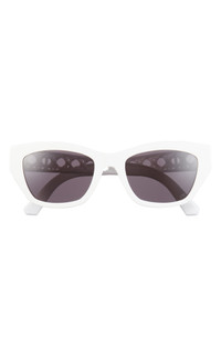 Signature logo hardware stands out at the 3D temples of Italian-made sunglasses shaped in an angular butterfly silhouette. 53mm lens width; 20mm bridge width; 140mm temple length 100% UV protection Plastic Made in Italy