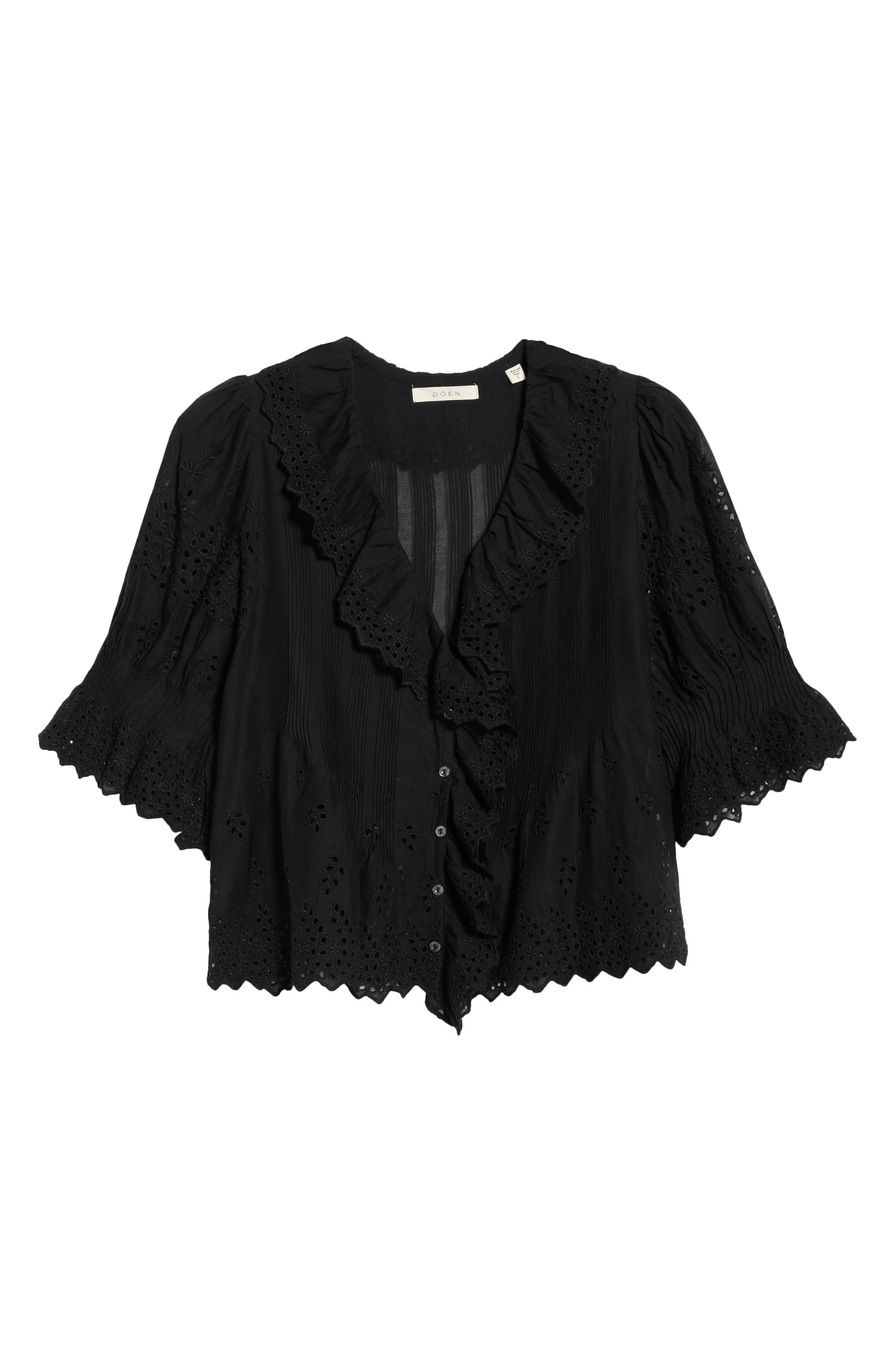 DÔEN Henri Eyelet Trim Organic Cotton Voile Top in Black Eyelet at Nordstrom