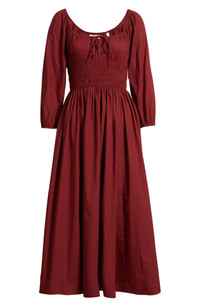 DÔEN Quintessa Shirred Organic Cotton Maxi Dress in Deep Crimson at Nordstrom