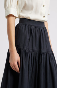 DÔEN Sebastiane Tiered Organic Cotton Poplin Maxi Skirt in Black at Nordstrom