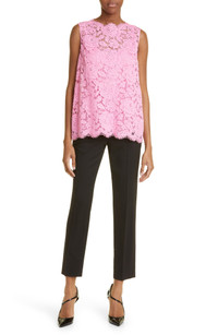 This stretch-lace top from the Italian design duo is part of a new DNA collection that offers everyday elegance that's timeless yet contemporary. The lace is detailed with the label's D & G monogram for a signature touch, while the stretch-silk crêpe de Chine camisole lining keeps the look comfortable against your skin. 26" length (size 48IT) Back zip closure Scalloped jewel neck Sleeveless Stretch-silk camisole lining 51% viscose, 24% cotton, 20% polyamide, 5% spandex Dry clean Made in Italy Women's Designer Clothing