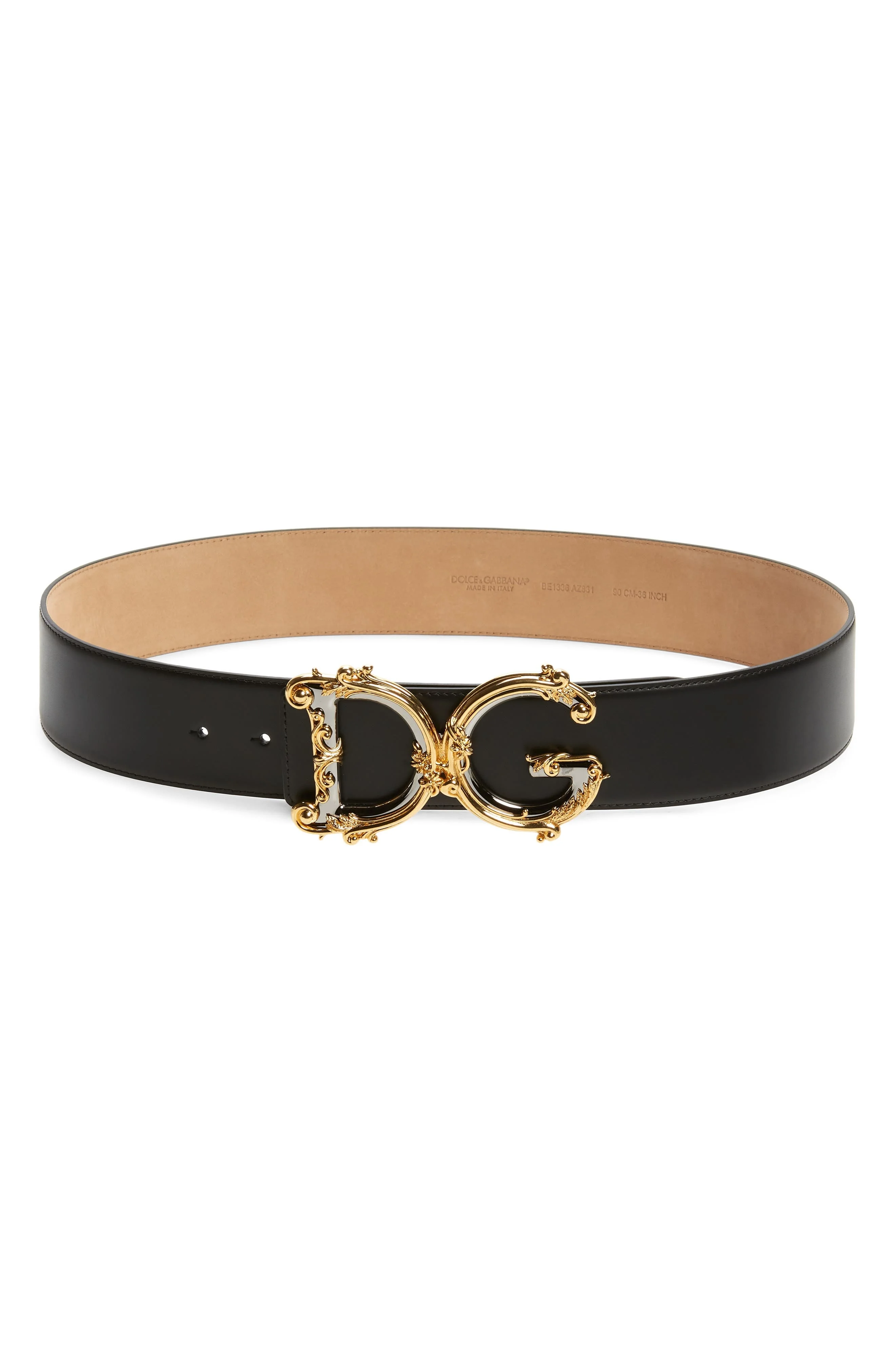 DG Baroque Buckle Calfskin Leather Belt