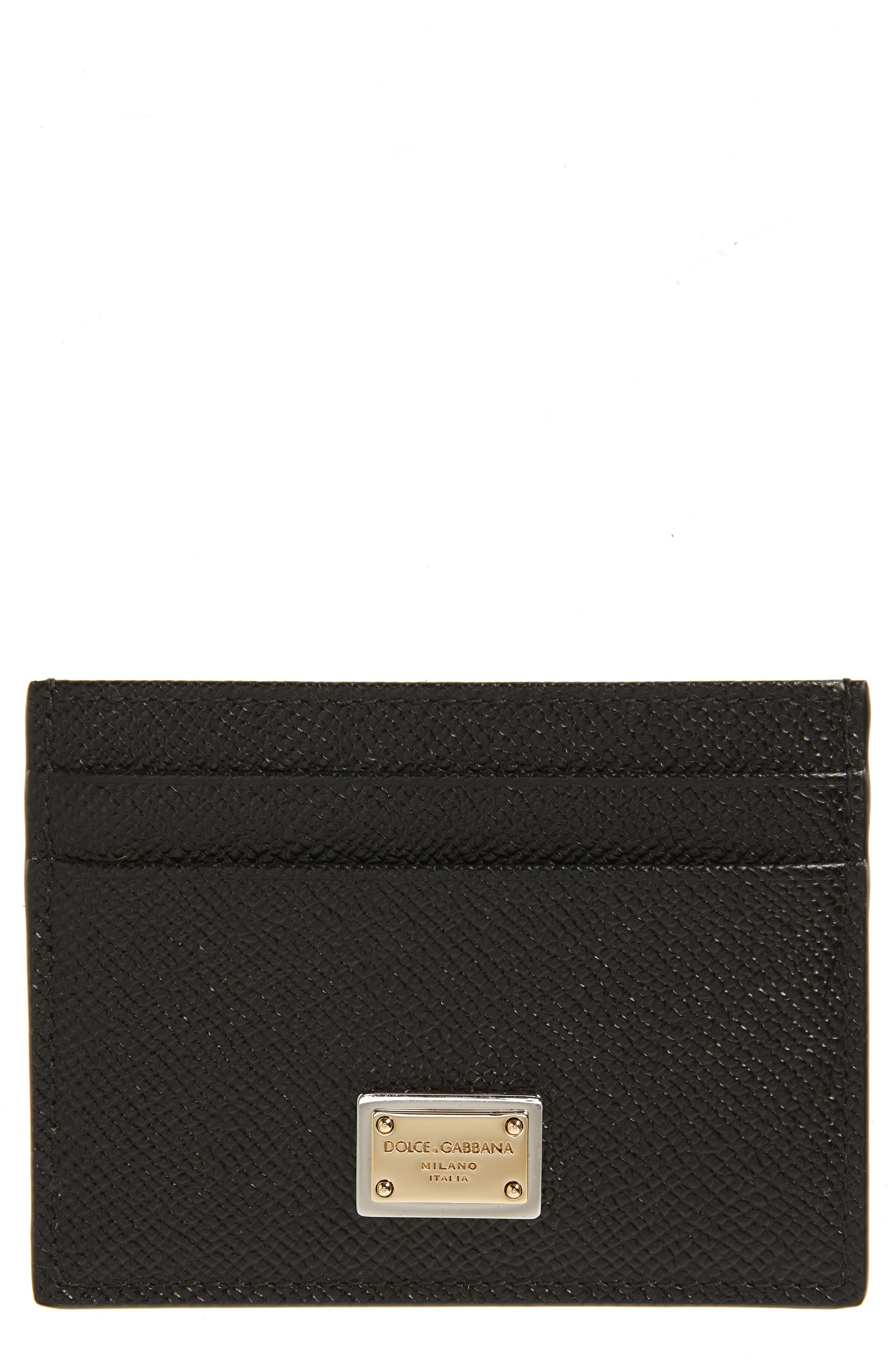 Carry your cards and currency in the contemporary-luxe style of this Italian-calfskin card holder detailed with a gleaming brand-engraved placard. Four card slots; slip pocket Leather Made in Italy Designer Handbags