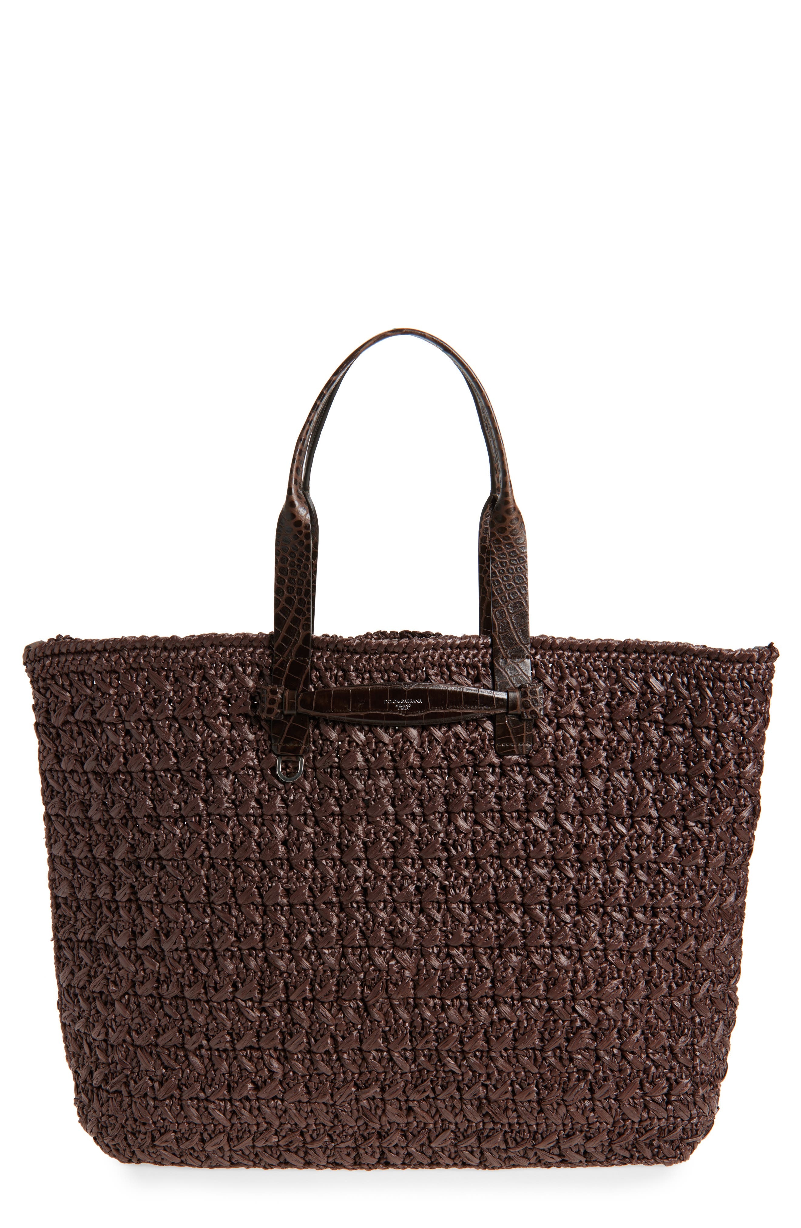 Dolce&Gabbana Adamo Raffia Shopper Bag in Moro/Ebano at Nordstrom