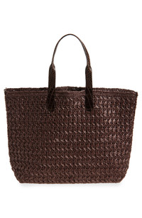 Crocheted raffia rendered in deep chocolate emphasizes the resort-ready artistry of this ultraspacious tote detailed with richly croc-embossed handles glinting with a foiled logo. Open top Shoulder straps Unlined Raffia with leather trim Made in Italy Designer Handbags