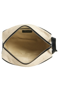 A striking interplay of textures defines this toiletry bag, where rich leather trims contrast the speckled salt-and-pepper canvas. The sleek carry handle adds a touch of modernity to its timeless appeal. 9"L x 5"H x 3"D Top zip closure Side carry handle Interior zip pocket Structured silhouette with flat base for stability Leather/textile Made in Italy