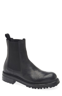 Rough-and-ready style drives the design of this rugged boot rendered in smooth calfskin and grounded by a hearty lug sole. Pull-on style with elastic gore insets Leather upper, lining and sole Made in Italy Designer Shoes