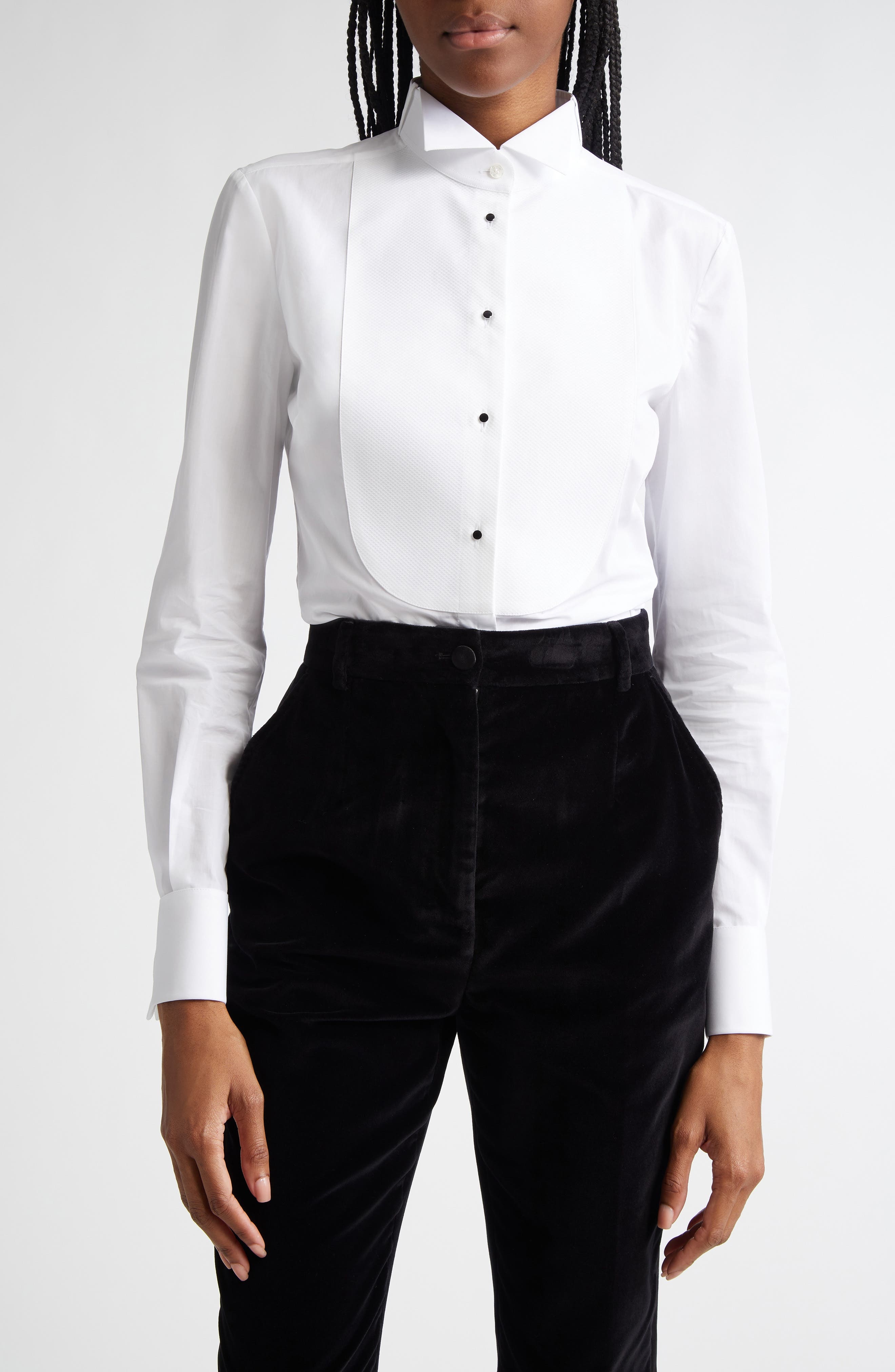 Dolce&Gabbana Bib Detail Cotton Button-Up Shirt in Bianco Ottico at Nordstrom