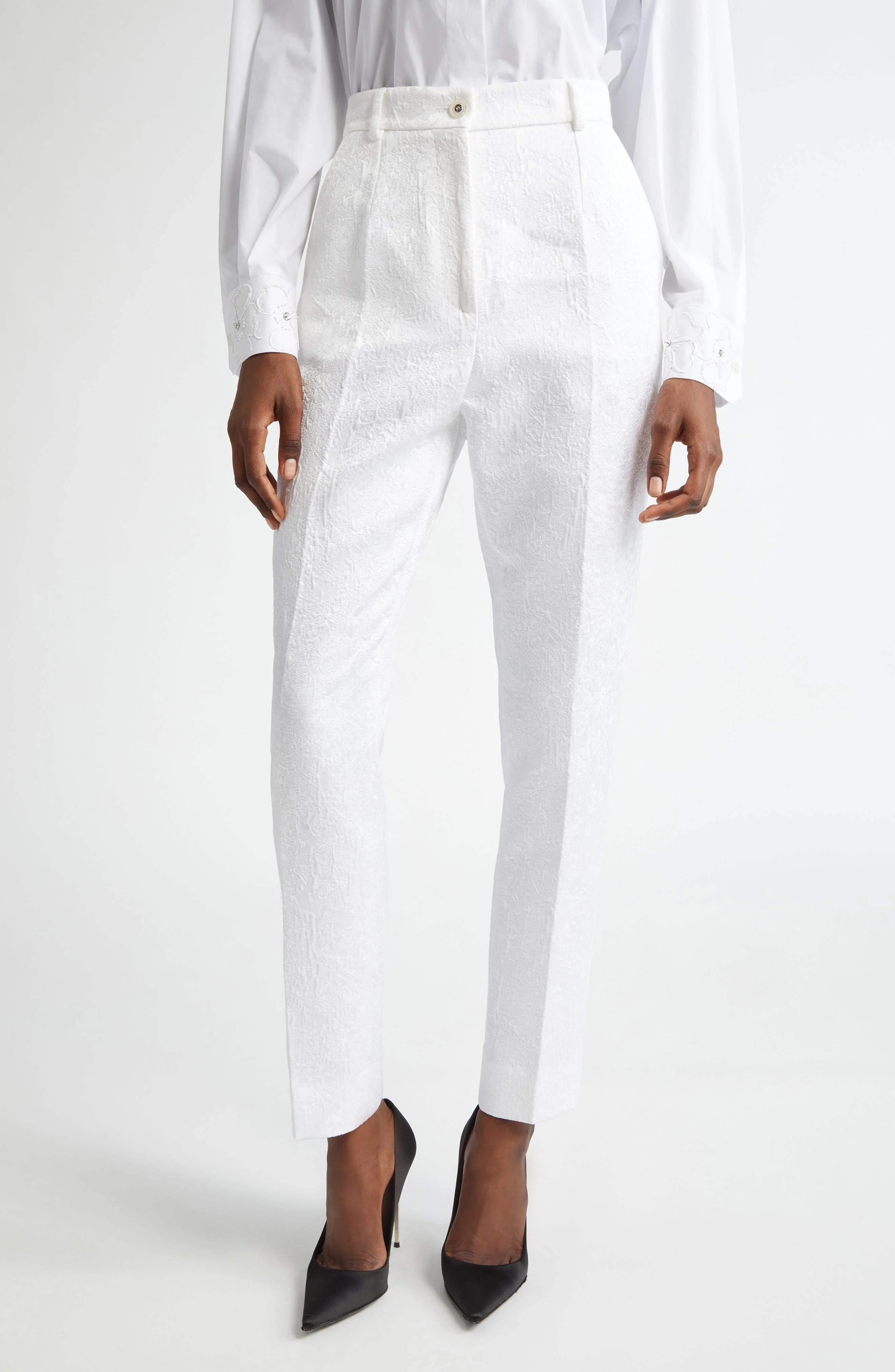 Dolce&Gabbana Brocade Skinny Pants in W0800 Bianco Ottico at Nordstrom