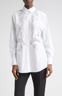 Dolce&Gabbana Cordonetto Lace Detail Poplin Button-Up Shirt in W0800 Bianco Ottico at Nordstrom
