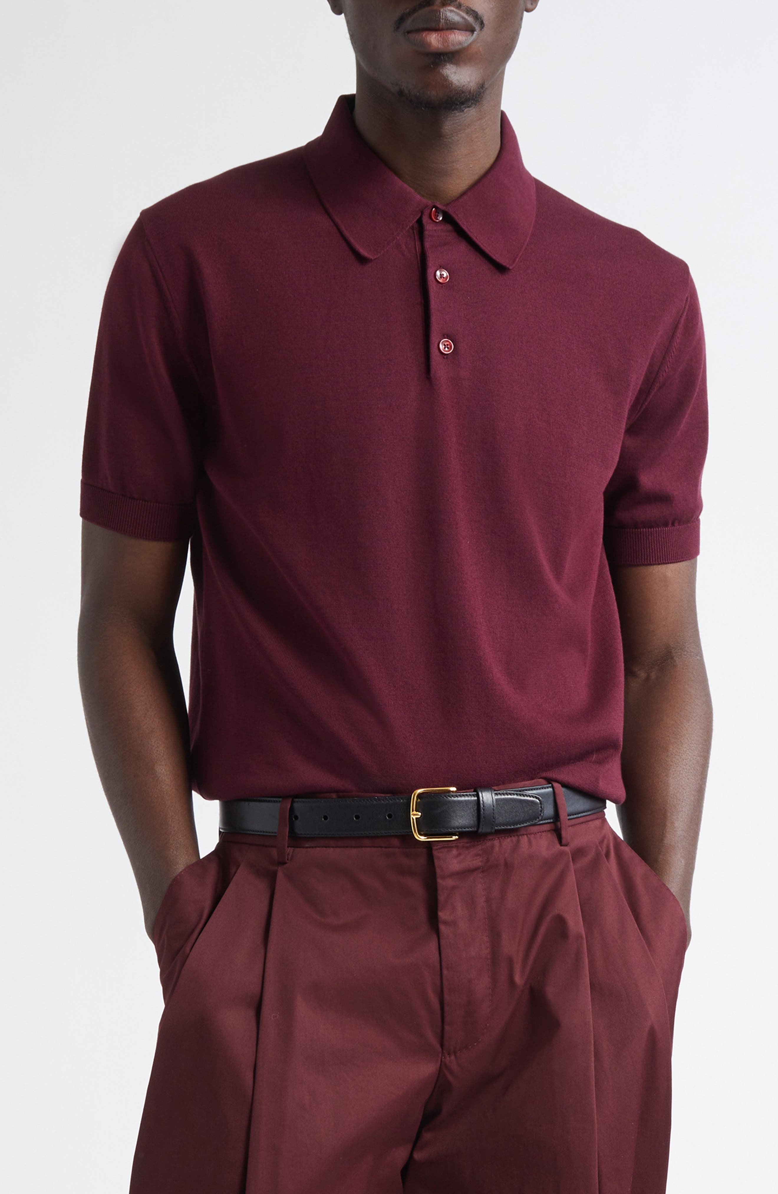 Knit from soft cotton yarns and finished with tonal buttons, this polo sweater serves as an elevated everyday staple. Button half placket Spread collar Short sleeves 100% cotton Dry clean Made in Italy Designer Clothing