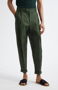 Dolce&Gabbana Crop Linen Trousers in V0304 Militare Scuro at Nordstrom