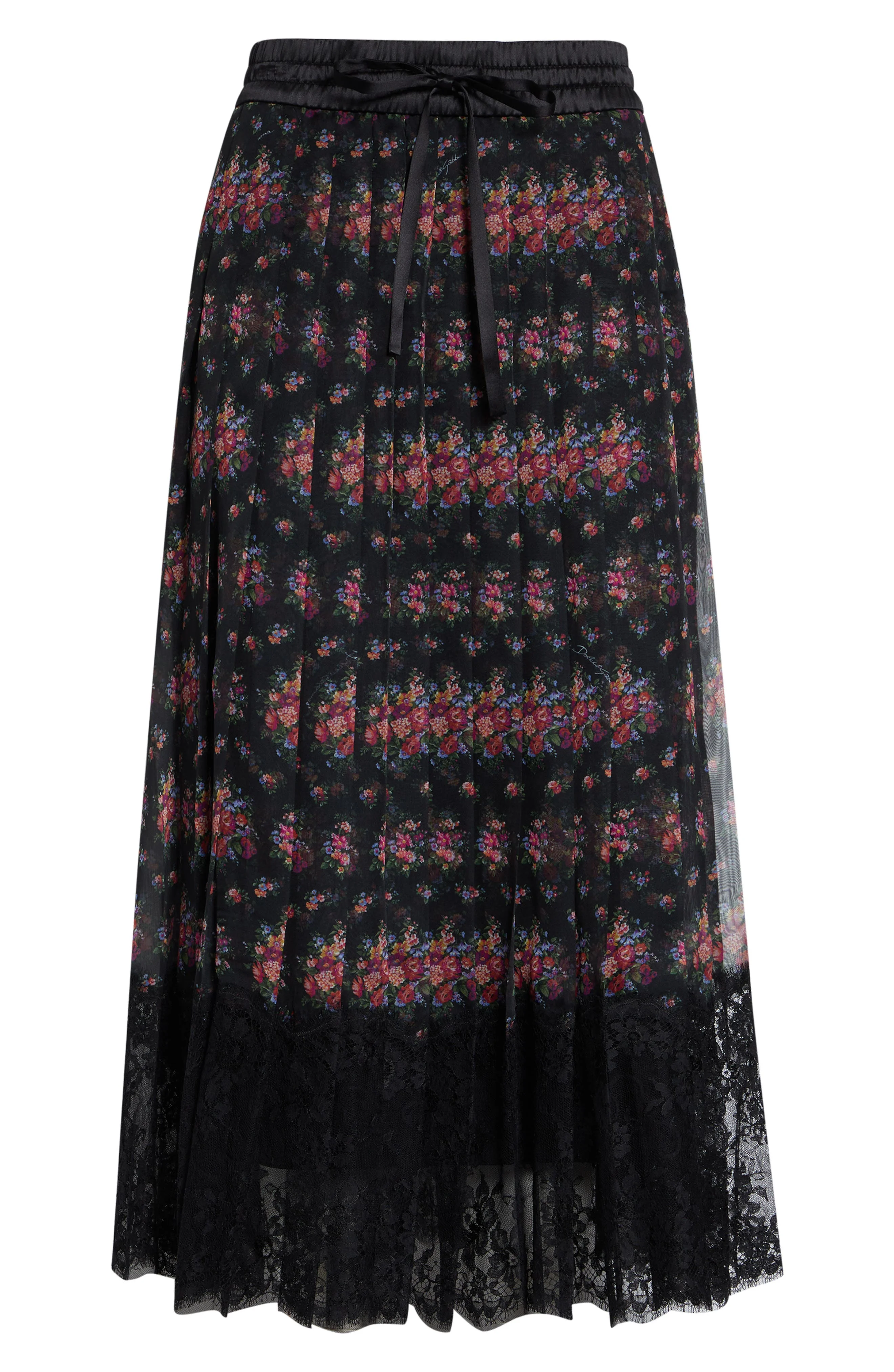 D&G's affinity for blossoms blooms brightly against inky Italian chiffon on this airy A-line midi skirt lined with fluid stretch-silk crepe de Chine. Elastic/drawstring waist Crepe de Chine lining 70% polyester, 10% polyamide, 10% silk, 6% cotton, 4% viscose Dry clean Made in Italy Designer Clothing