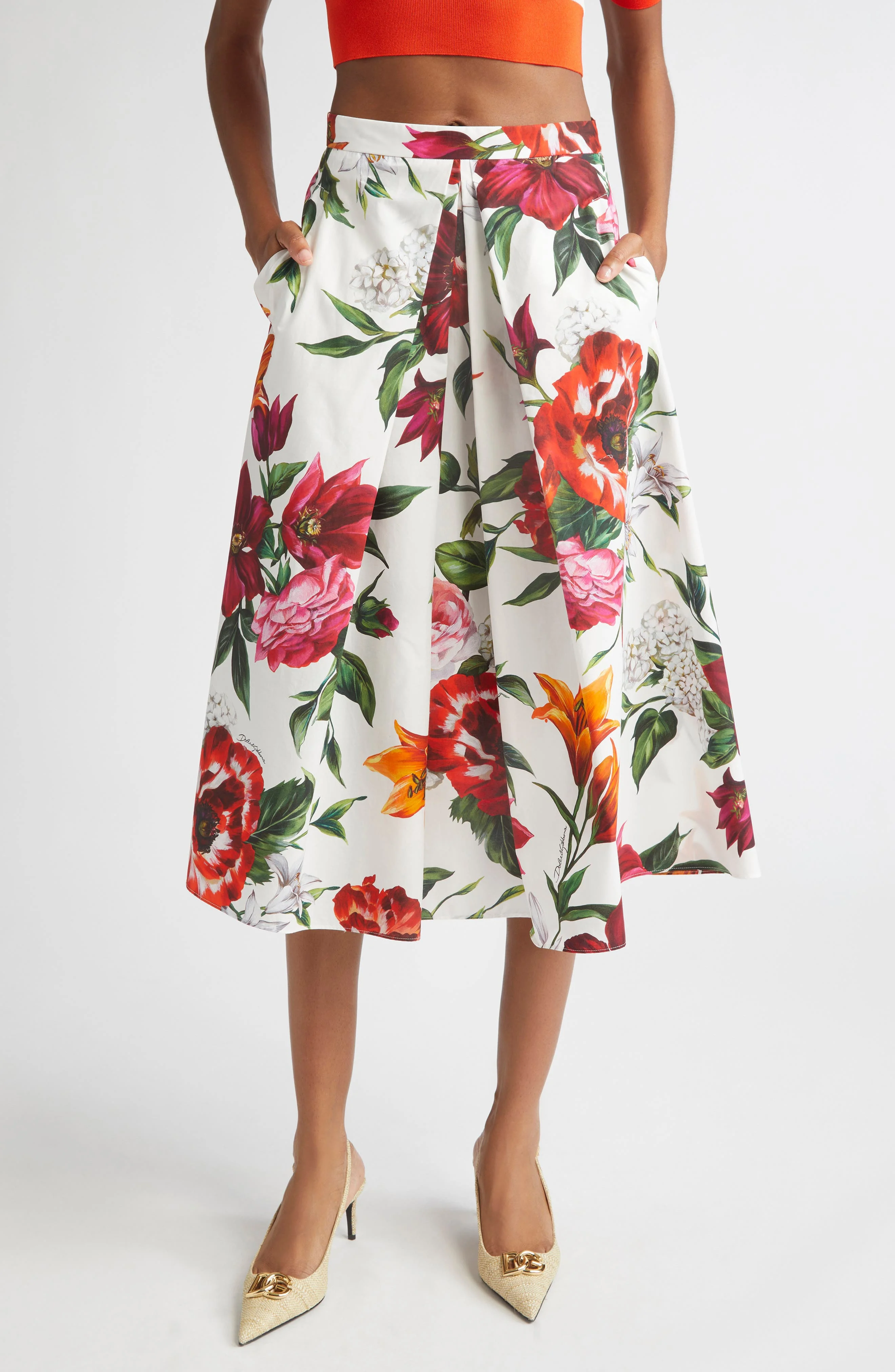 Dolce&Gabbana Floral Pleated Cotton Poplin Skirt in Ha5Pb Anemoni Gigli F.bco at Nordstrom