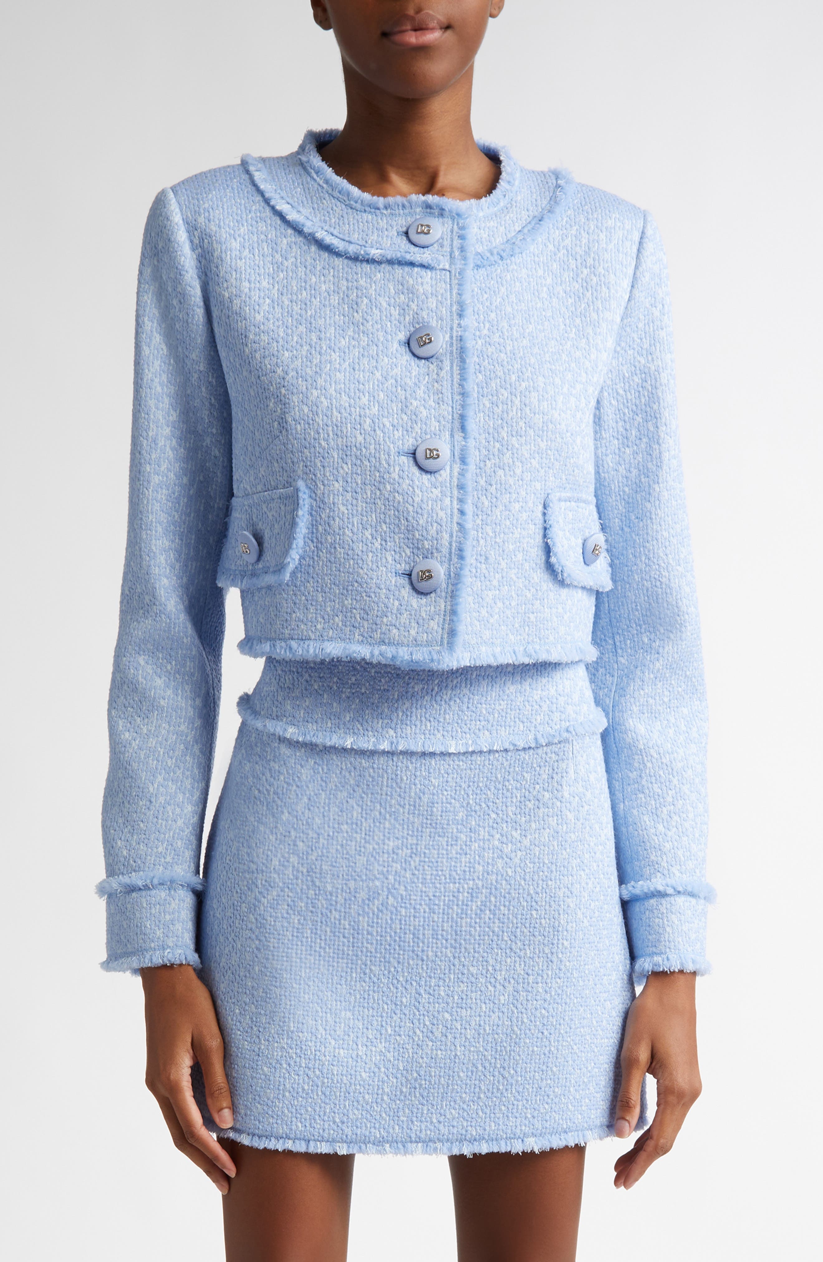Dolce&Gabbana Houndstooth Check Short Wool Blend Jacket in Glicine Viola Chiari at Nordstrom