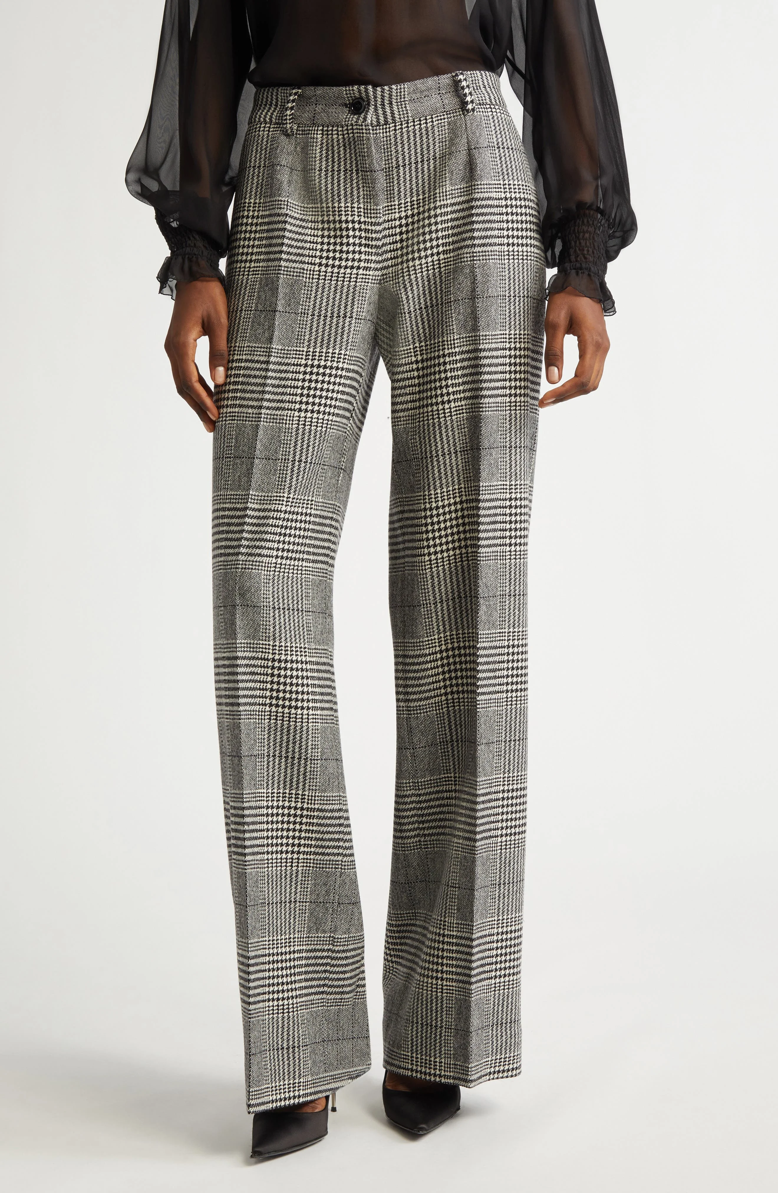 Dolce&Gabbana Houndstooth Check Wool & Cashmere Wide Leg Trousers in S8100 Quadri-Check-Tartan at No