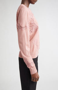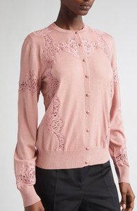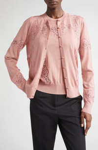 Dolce&Gabbana Lace Detail Virgin Wool & Cotton Blend Cardigan in Rosa Polvere Scuro at Nordstrom