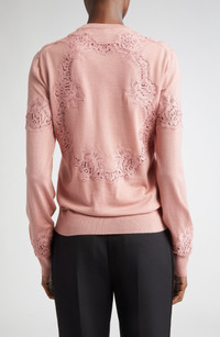 The Italian label's long-standing love affair with romantic floral lace continues in this woolly, cotton-enriched cardigan decorated with logo-embossed buttons. Front button closure Crewneck Long sleeves Ribbed cuffs and hem 70% virgin wool, 24% cotton, 6% nylon Dry clean Made in Italy Designer Clothing