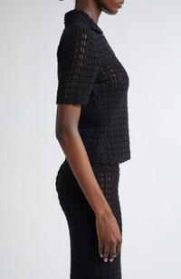 From the label's 'Sicily Collection' that reinforces D&G's codes rooted in Italian heritage comes this short-sleeve polo sweater knit in an open stitch from virgin-wool yarn. Button half placket Spread collar Short sleeves Sheer 100% virgin wool Dry clean Made in Italy Designer Clothing