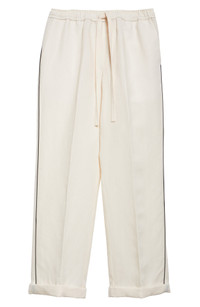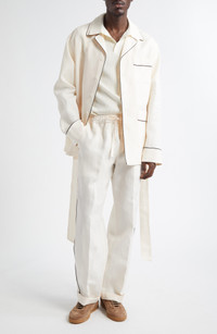 Contrast piping and front creases lend elevated detail to these Italian-made linen pajamas pants featuring just a kiss of silk. Elastic/drawstring waist Front slant pockets Back patch pocket 98% linen, 2% silk Dry clean Made in Italy Designer Clothing